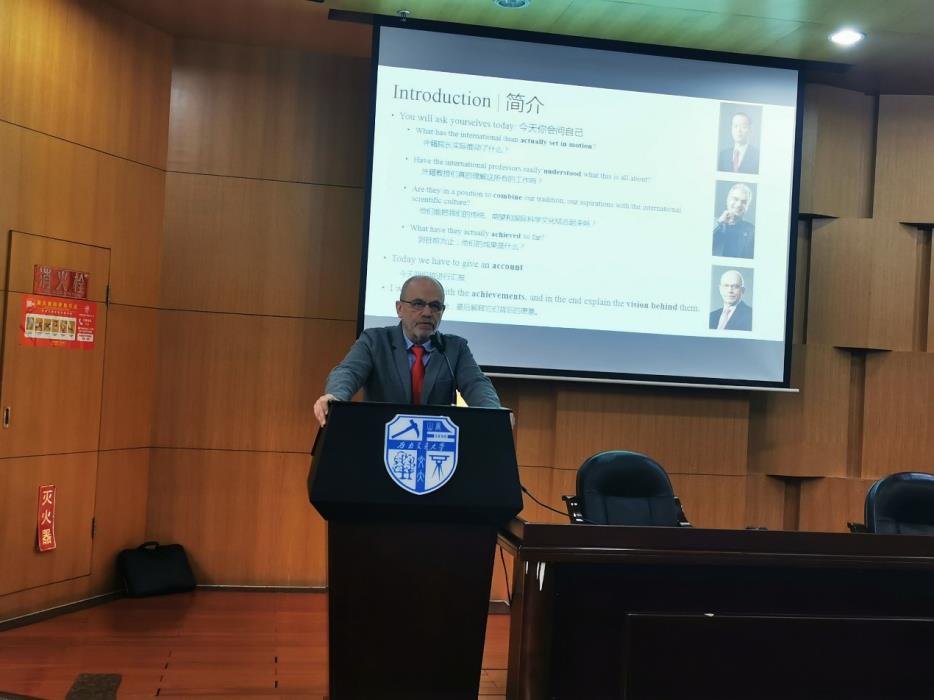 院长Lutz Plümer进行2019年述职汇报。Lutz Plümer进行了个人介绍,主要从人才引进、学科发展等介绍了国际化示范学院建设情况。最后表达了对地球科学与环境工程学院国际化示范学院的美好愿景。