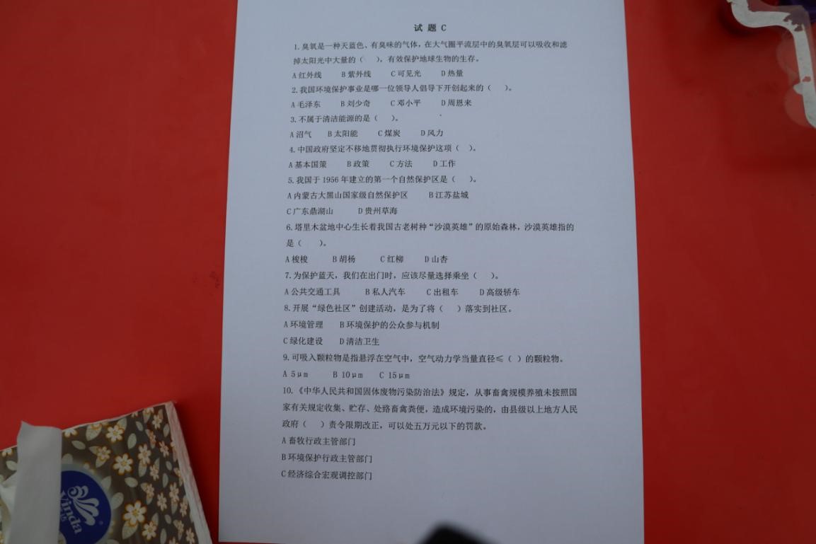 环保知识问卷囊括了基本环保知识和环保常识,参赛者抽取一套问卷作答。通过这样一份环保知识问卷,同学们会感受到自身环保意识的欠缺,凭借此问卷来增加环保常识。