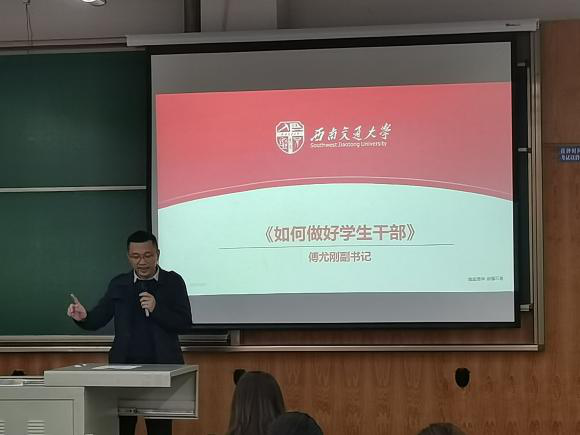 最后,院党委副书记傅尤刚老师为全体师生带来第一课《如何做好学生干部》,总结了开课仪式,并表达了对班委未来工作的期待。傅书记叮嘱,班委要起到良好的带头作用,在做好本职工作的同时,也要做好时间管理,力争学习与工作齐头并进,为其他同学树立起一个良好榜样。班委更应该明确自己的职责所在,积极帮助本班需要帮助以及学习和生活方面有困扰的同学,坚决不让一个人掉队。同时班委应该做好自我提升,贯彻四个意识,做到五个过硬,为良好学风班风建设贡献力量。