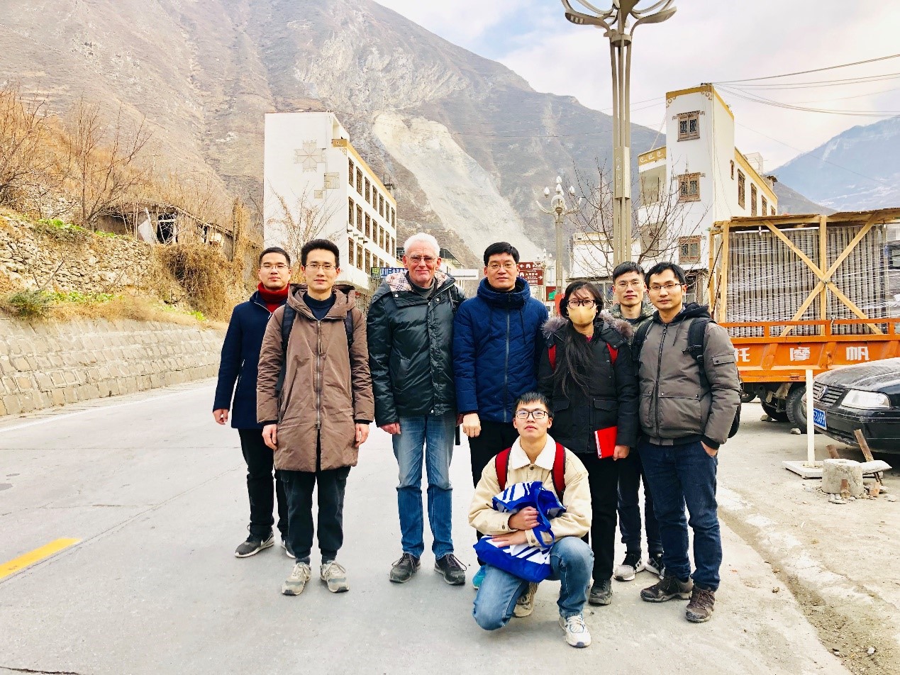 Bernd Wuennemann教授为高层次外国专家、中国政府友谊奖章获得者。其于2020年12月17日入职我院地质学科伊始,便着手组建科研及研究生导师团队,初步形成了以Bernd Wuennemann教授、赵晓彦教授、廖昕副教授、刘园园博士、晏达达博士为主要成员的科研及研究生导师团队。2021年1月8日,该团队师生8人(包括硕士生2人、博士生2人)赴汶川县黄岩村开展千枚岩滑坡野外实地考察。