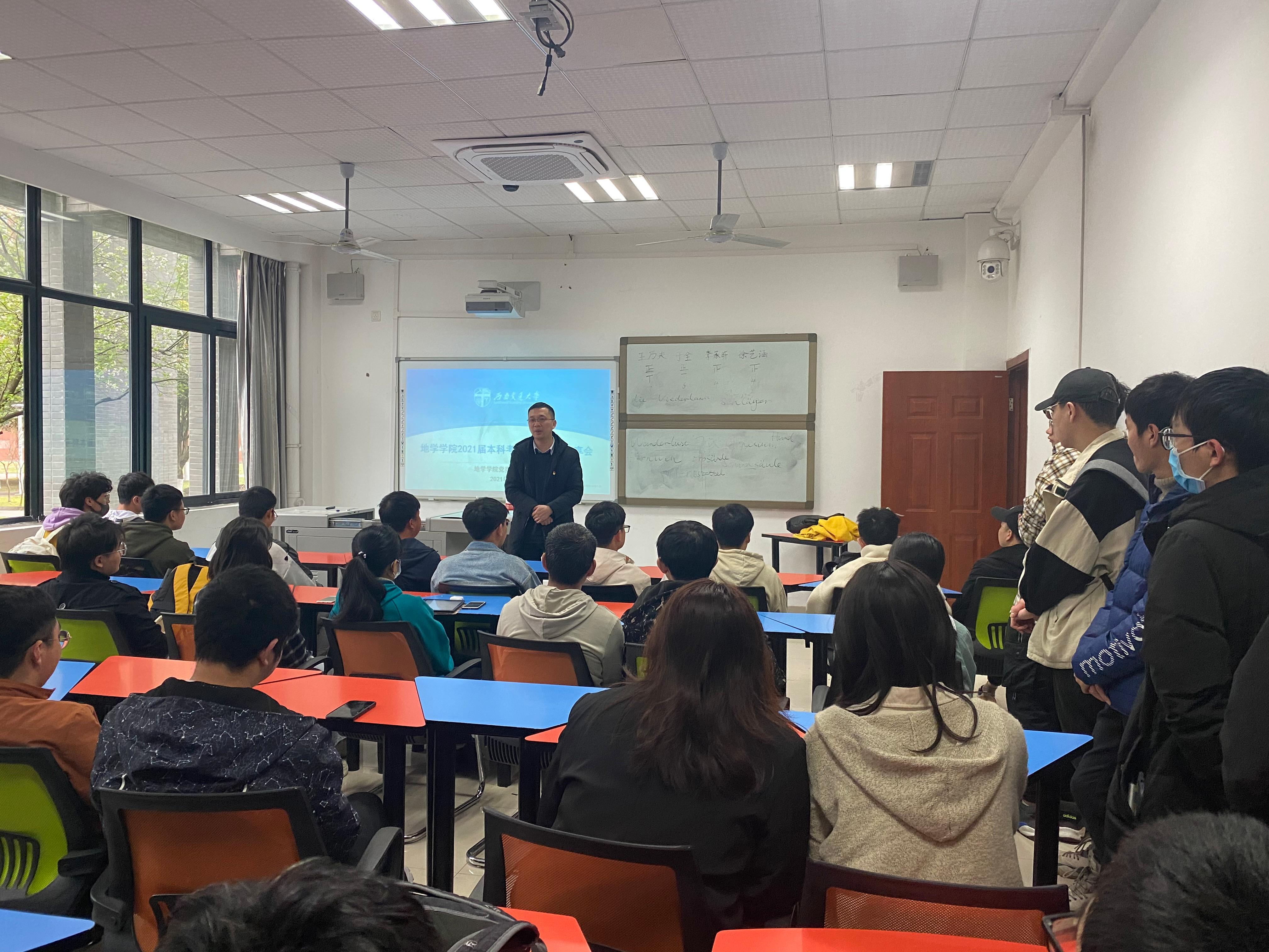 学生近几年的考研情况开始分享,提醒同学们研究生复试、调剂中出现的常见问题和注意事项,鼓励同学们以乐观的心态积极准备考研复试。他要求取得高分的同学不能大意,要主动请教、提前准备;嘱咐分数较低的同学不要气馁,要密切关注调剂信息以及就业季的招聘信息。几十分钟的精彩讲解,让同学们受益颇多,现场掌声阵阵。