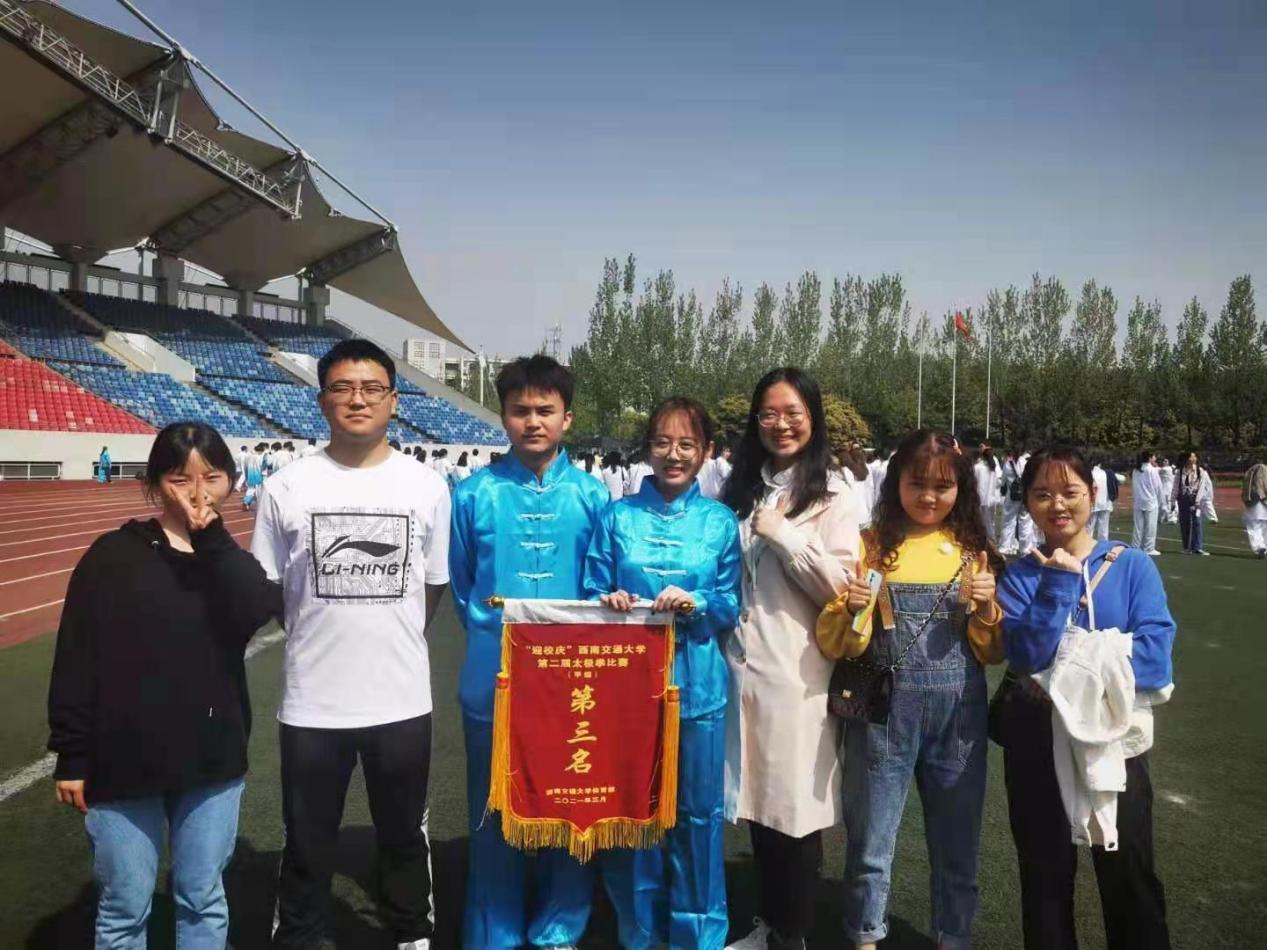 太极拳代表队由140名地学学子组成,在院团委学生会的指导下,140名队员经过多日集训,信心满满的走向赛场,最终取得93.5分甲组第三名的好成绩。